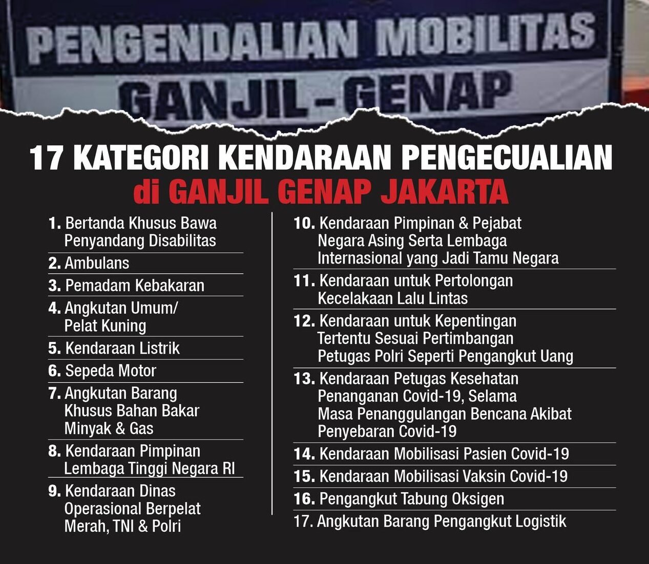 Selama jam tersebut, kendaraan dengan pelat terakhir angka genap (0, 2, 4, 6, 8) diperbolehkan melintas di ruas yang menerapkan ganjil genap, sedangkan yang berakhiran angka ganjil diimbau menyesuaikan.